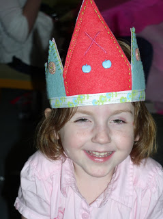 Xi and her birthday crown I made. This will grow with her through the years, and every year I plan on adding something else to the embellishments.