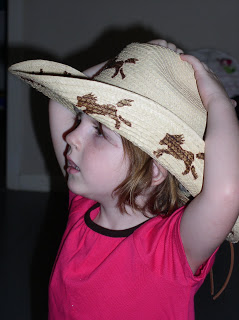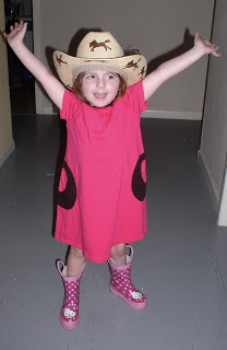 Xi’s new dress from Auntie Grace, and cowgirl hat from Grandma Martse and Papa Dennis. This was on Sunday, her actual birthday and we were leaving to go to brunch.