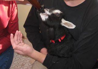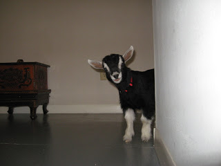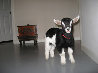 Our newest baby. We swapped one of the baby boys for her on Saturday. June was NOT pleased at all. Poor thing. She refuses to accept this little girl, so Kubrah is a house goat for right now. HAHA! She is the sweetest thing…LOVES her bottle and is so snuggly! We are really happy with her. Jason actually took her for a quick walk on her leash! We are introducing her slowly to June everyday in hopes that June will soon be alright with her. Mongo loves her, but June just goes crazy when the two babies are playing outside the pen. And I get to start milking June in the next week! Oh the joy! HAHA!