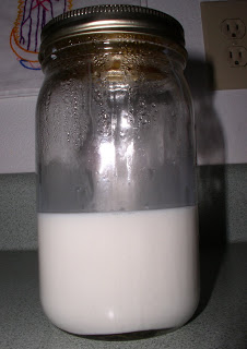So, we milked June for the first time today. What an ordeal! She is not used to this, so was not happy to be restrained, but she calmed down alot when she realized she was getting flax/coconut chips at the same time. HA! Jason held her horns and stood over her locking her hips in with his legs. She didn’t fight at all once we started milking. We didn’t go for the big milk session as we are trying to ease her into it, but we did get a half glass full – and let me tell you, it’s the best milk I’ve ever tasted! So sweet and creamy. I think once June is used to it she’ll realize it’s not so bad…and we’ll start having yummy goat milk and cheese sooner now, rather than later!