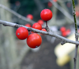 Yaupon berries had a flash of scarlet to the landscape. I find their brilliance a welcome relief to the otherwise bare trees around.