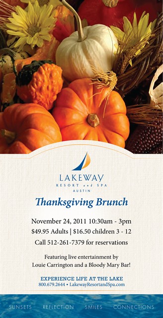 Hey there everyone living in Austin and surrounding areas! The Lakeway Resort and Spa is having some exciting holiday events and they asked me to share with you their invite for Thanksgiving. This all looks like it will be alot of fun!