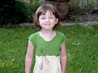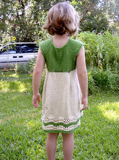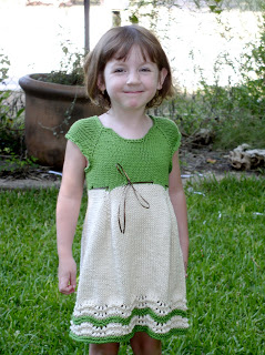 My extraordinarily talented friend, Michelle, wrote the cutest dress pattern and asked if I would help by test knitting it in a size 4. I was thrilled to help out of course! One of the best things about this pattern, was Michelle wanted us to use a certain weight and fiber content of yarn, cotton! Yay! Xi can’t stand anything with even the slightest amount of wool in it, so knitting for her has been challenging as she just won’t wear any of it. I figured this was do or die with her, so when the yarn came I asked her to feel it and see what she thought. She smiled gleefully, announcing, “It’s so soft!” Whew! First hurdle down. So I knit up the dress and finished it this morning. She was eager to try it on and I have to say it is a huge success as she now refuses to take it off. She has declared it the perfect princess dress and wants to wear it everyday..haha! Hats off to you Michelle for a beautiful pattern and the perfect yarn requirements!