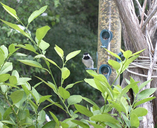 So far we have Carolina Chickadees, Red House Finches, Black Crested Titmouses, Blue Jay, Cardinal, Carolina Wren, and 3 or 4 more who I’m still trying to get a good picture of. One looks yellowish and sits up in one of the trees singing very happily and loudly…I suspect a Warbler of some sort, but am not sure. I also saw another hummingbird, but it didn’t stay long. I think I need to put out another feeder.