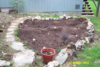 So we got another veggie section done over the weekend.  Jason and his dad brought in lots of good, organic soil on Saturday.  Sunday we shaped the mounds and planted the seeds.  We have pumpkins, cantaloupe, more cucumbers, chard and eggplant.  We’ll see how they do.  This is the site for Jason’s gothic garden, but that will take awhile to get all the plants he wants….and it is a great veggie spot right now.