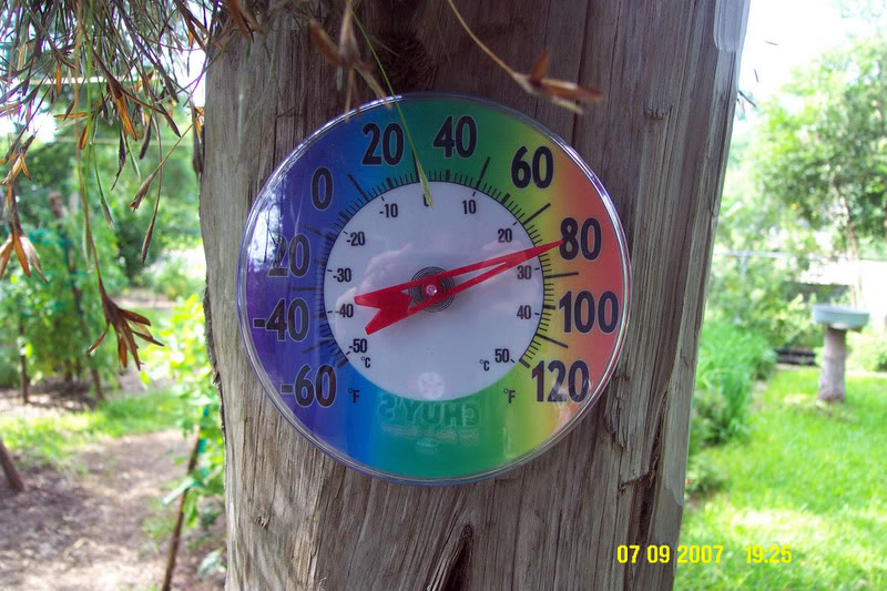 Summer is definitely here.  This thermostat is on the front porch, in the shade at around 8:30 AM (the camera date and time are wrong in the picture).  It’s breezy this morning though, so I am able to have the windows open for a bit.  It is suppose to reach 91 this afternoon, although I’m not complaining because this time last year was well into the 100’s!  It’s been a mild summer so far, with lots of rain.  Which has been great for the gardens of course!