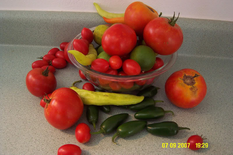The perfect harvest for yummy summer salsa…the limes are not our’s, although