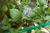 Another friend is hanging out with the tomatoes today.  We had these in Hawaii and their webs always facinated me!